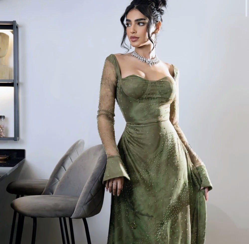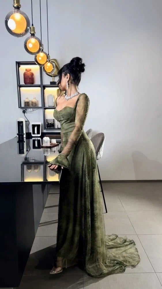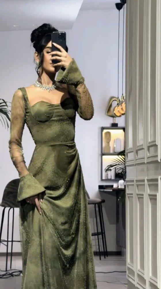 فستان سهرة انيق زيتي